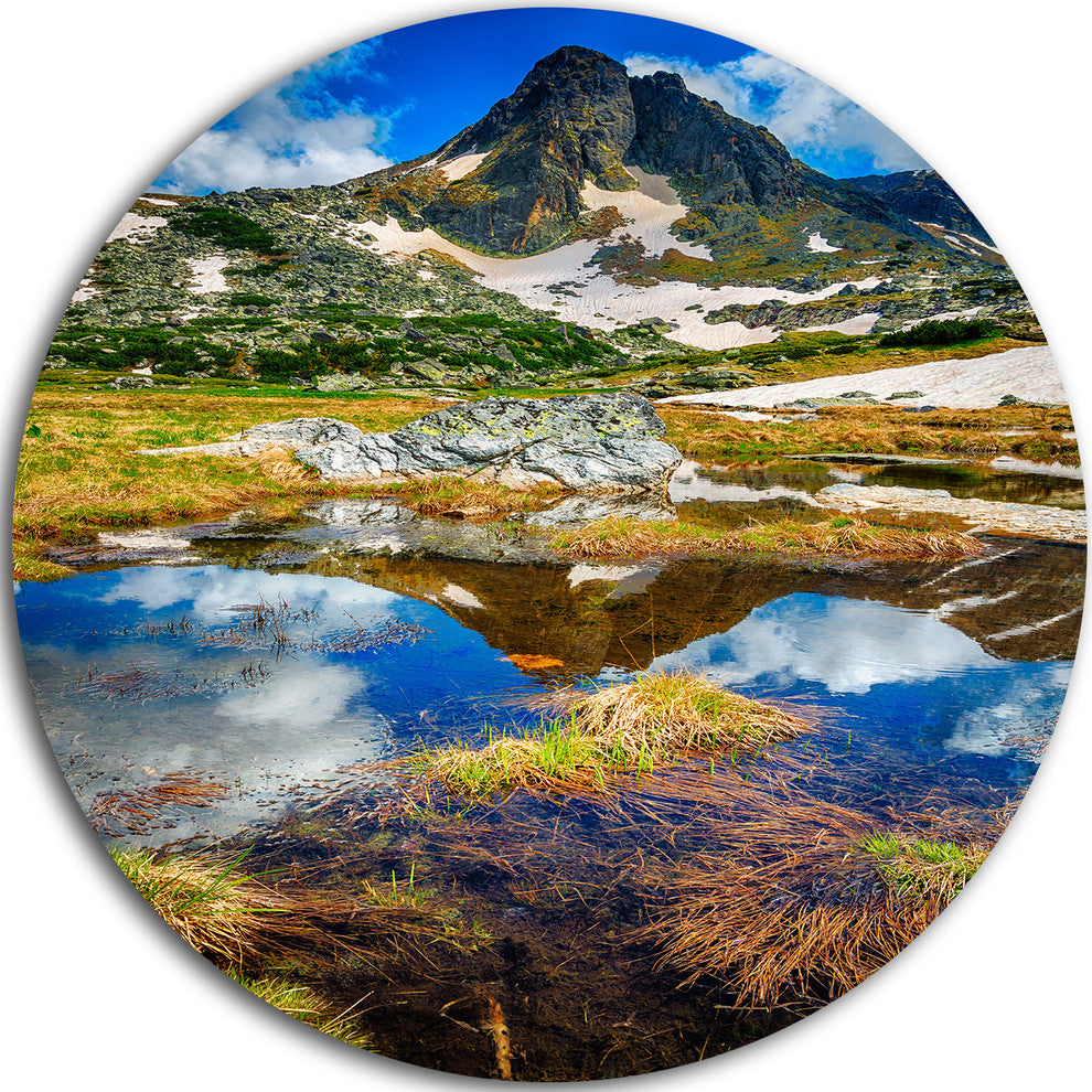 Bring Contemporary Abstraction to your home with this large Circle Metal wall art. This Rila Lakes District with Reflection Metal Artwork makes it the focal point of any room or office.