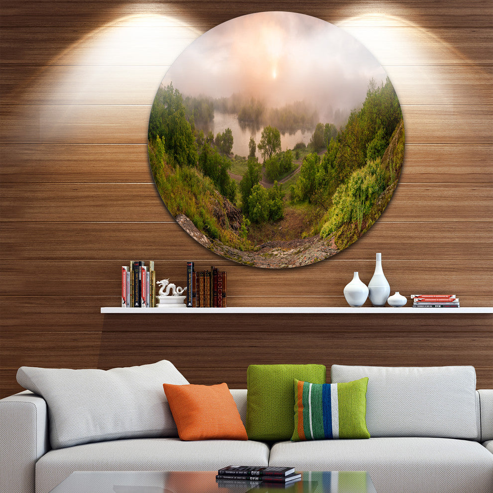 Rising Above The River Mist, Landscape Photo Round Wall Art, 11"