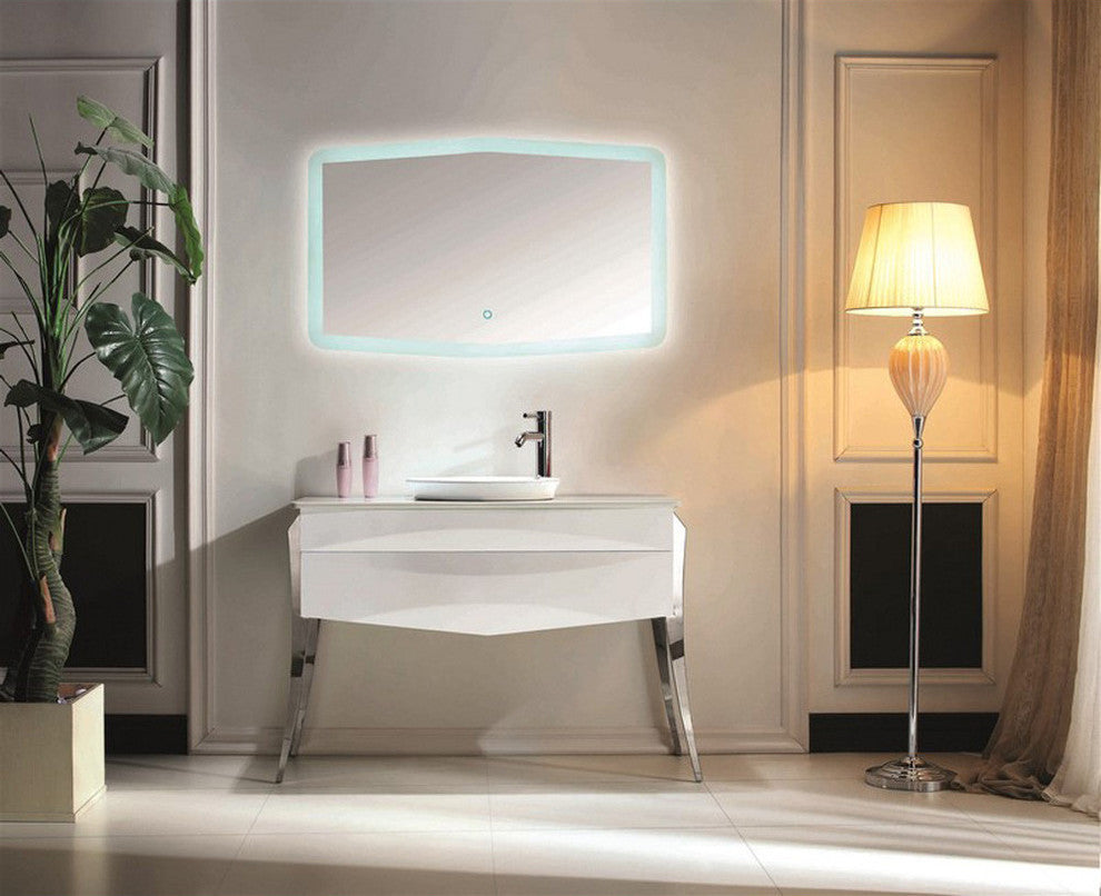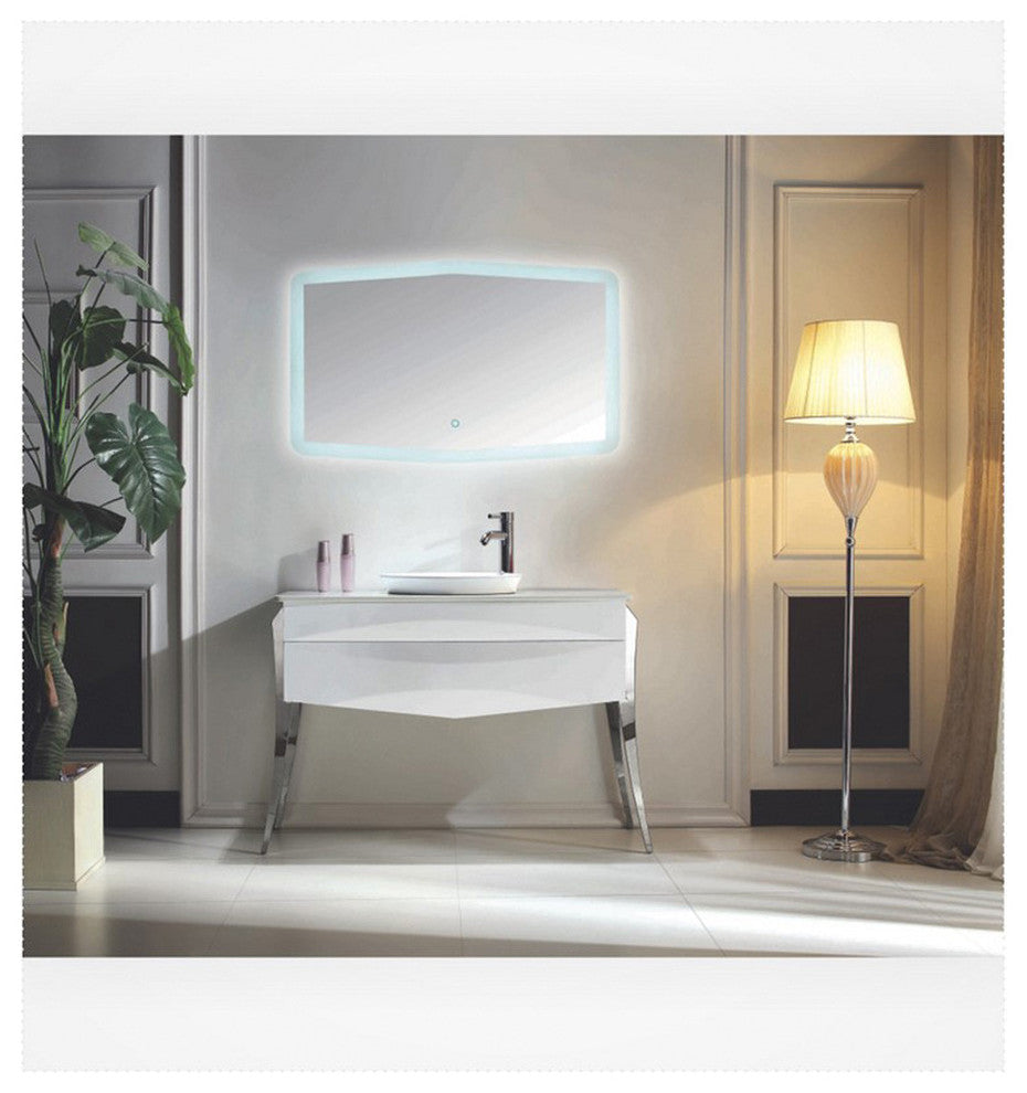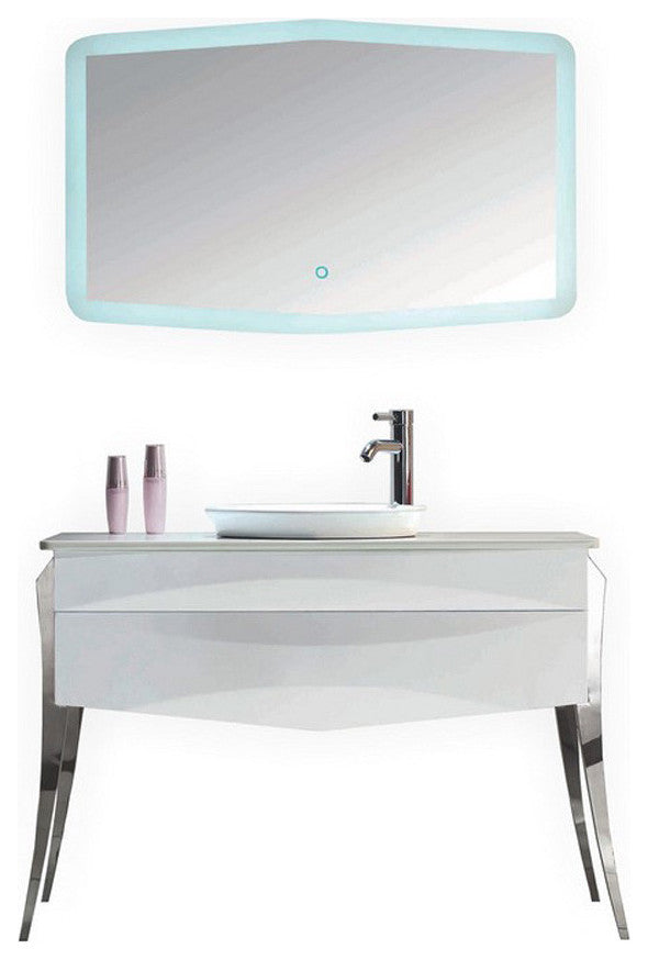 The elegant and stylish Riso vanity from Kube Bath will be the focus point of any bathroom. It is finished in high gloss white lacquer and chrome finish curved legs that make the Riso vanity unique. It features a pure white quartz counter top and a half recessed sink. High Gloss White Lacquer Paint Finish. 2 Drawers with Push-Open Hardware. Half Recessed Ceramic Sink With Overflow. Minimum Assembly Required. Unique Design Curved Legs