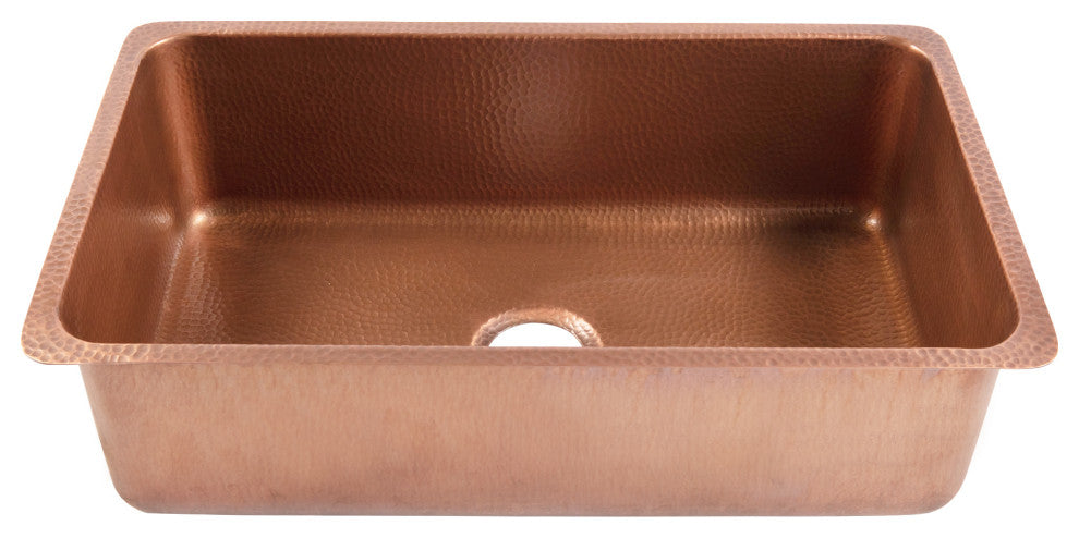 A serious home chef needs a sink that is designed for a fast-paced kitchen. The Rivera undermount copper kitchen sink makes cleaning up easy - ensuring crumbs and moisture go in the sink, not in a seam. It also offers an extra deep, single bowl with tight corners for maximum workspace. Our durable, solid copper sinks are hand-hammered by skilled craftsman and protected by our lifetime warranty.Dimensions: 31.25" x 18.25" x 9.25"Undermount style creates a seamless transition from sink to countertop and ensures crumbs and moisture easily go in the sinkExtra deep single bowl with tight corners for maximum spaceHand-hammered, solid 16-gauge copper is protected by our lifetime warrantySound dampening pads reduce dish clatter, noise, and vibrationsAntique Copper is aged to a medium-to-light tone for that classic copper lookRecommended Products: Wren Kitchen Sink Bottom Grid in Antique Brown (#SG004-27)Kitchen Sink Basket Strainer Drain in Antique Copper (#TB35-01)Kitchen Sink Disposal Drain Flange in Antique Copper (#TD35-01)Copper Care IQ Kit (#SARMOR-101)