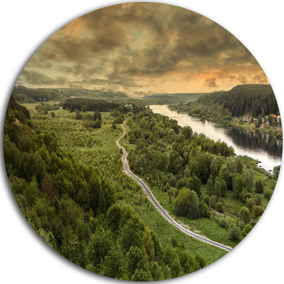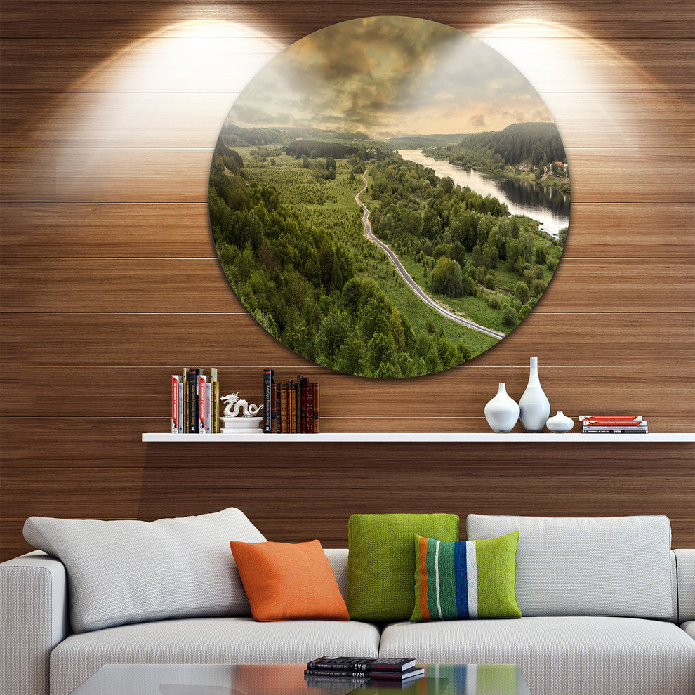 Road Along The Nemunas In Green, Landscape Round Wall Art, 36"