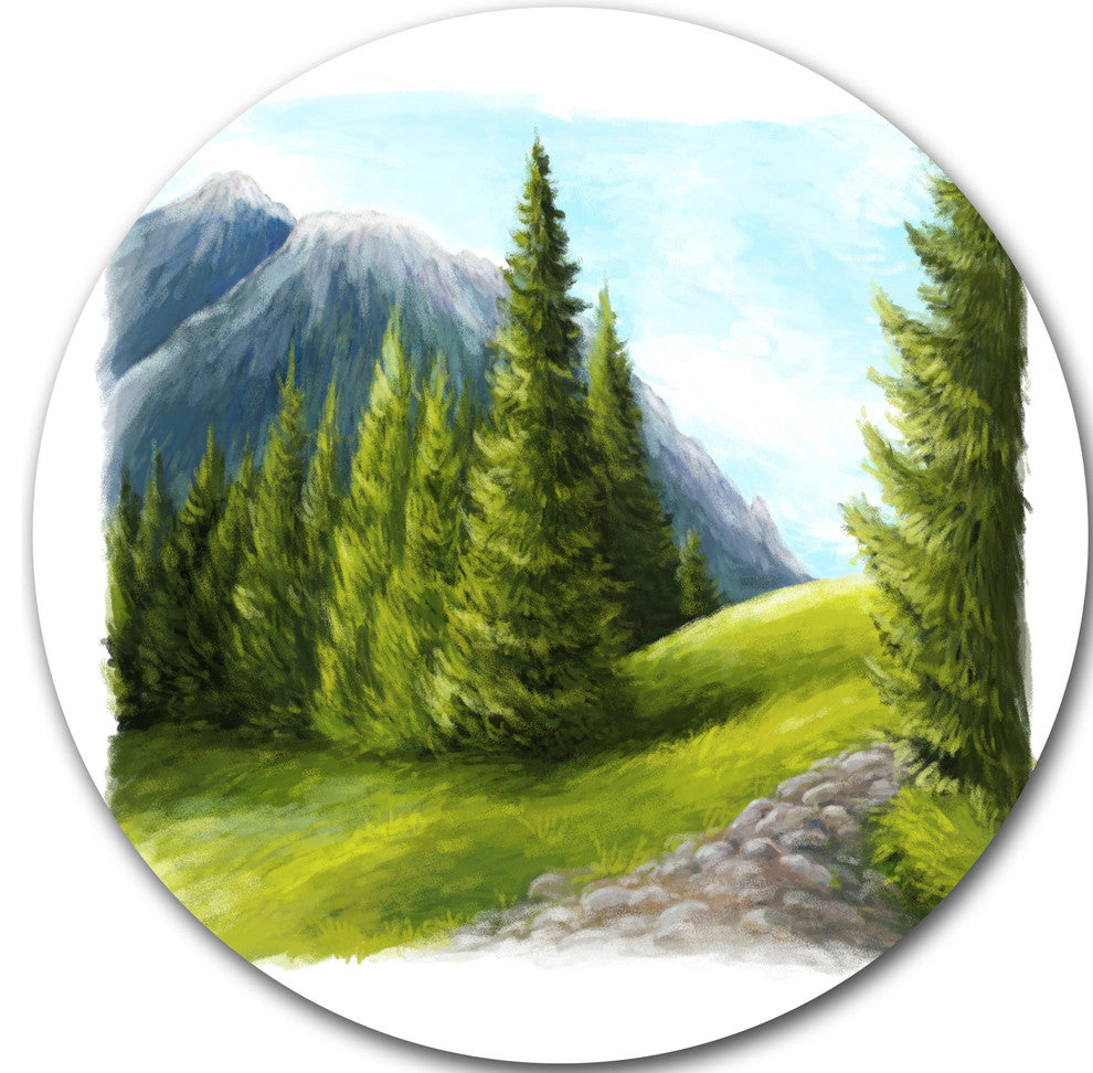 Bring Contemporary Abstraction to your home with this large Circle Metal wall art. This Road in Green Mountains Metal Artwork makes it the focal point of any room or office.