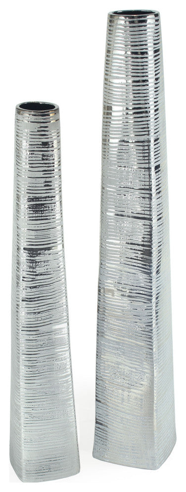 Finish off your room''s monochromatic color scheme with this ceramic vase with a two-tone silver metallic finish.