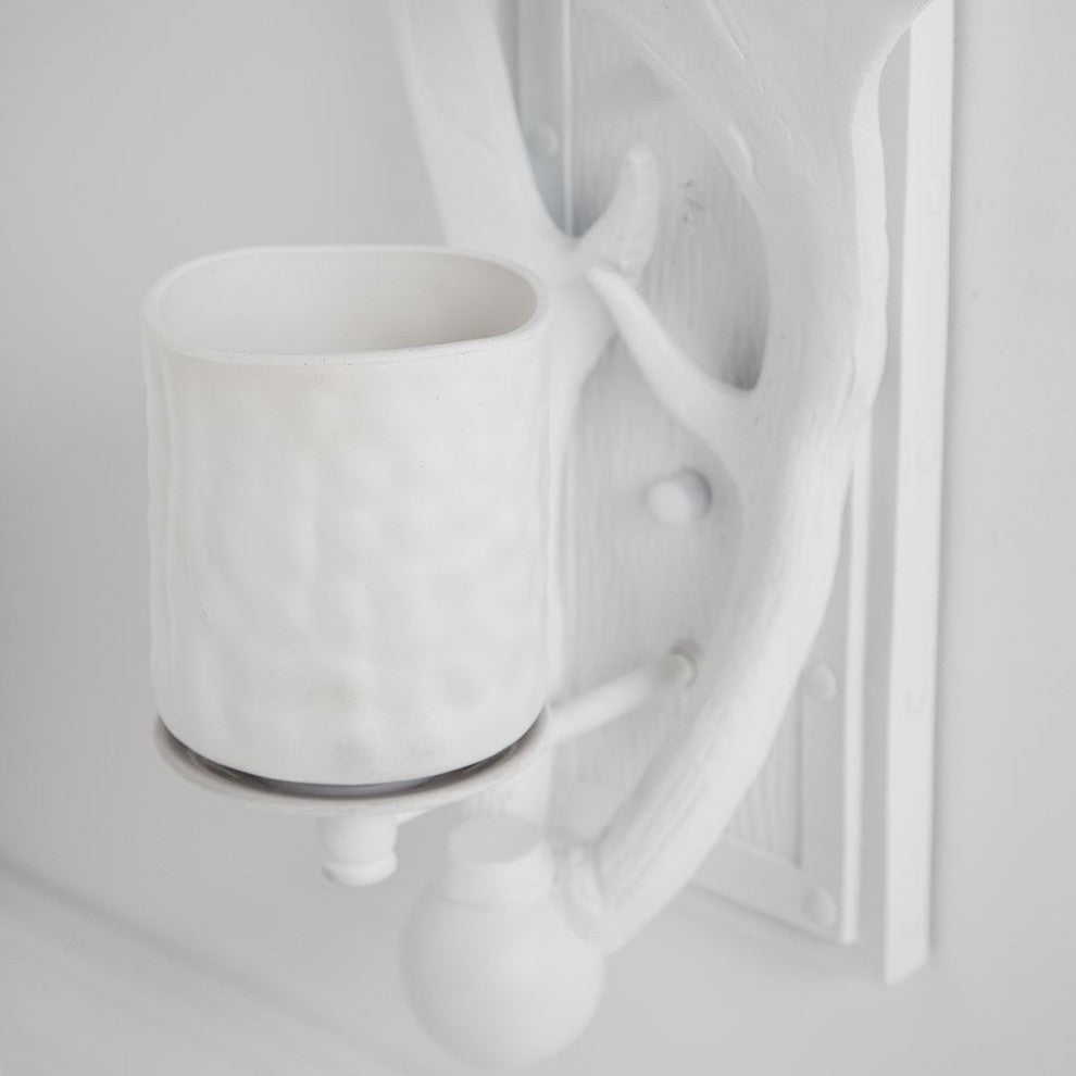 Ornate pure white resin antler sconce. Uses an E12 chandelier bulb (not inlcluded) 40 watts.