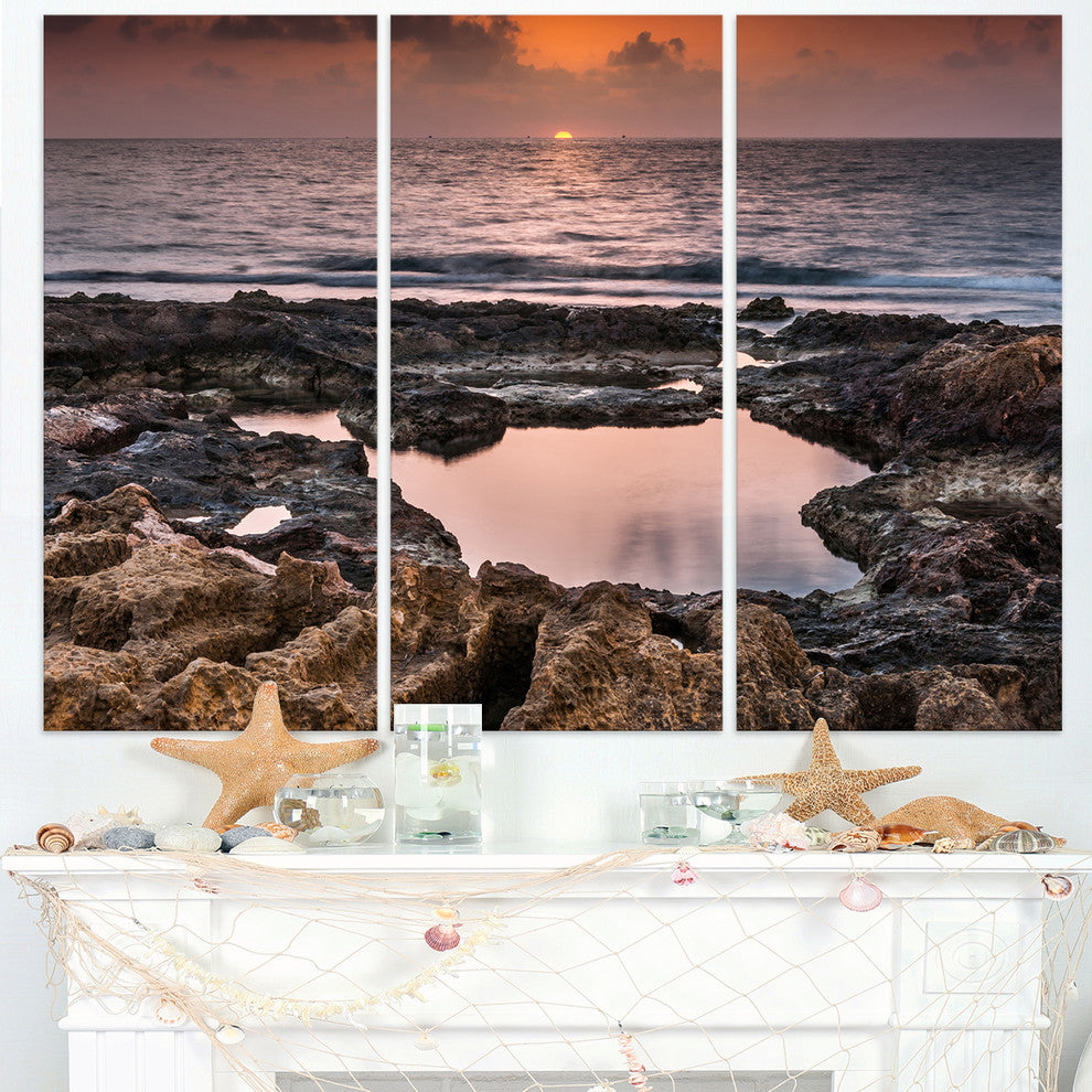 "Rocky African Coastline Sunset" Metal Wall Art, 3 Panels, 36"x28"