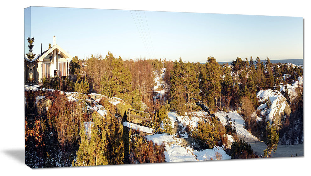 The Rocky Coast with Wooden Cottage canvas art print is sure to make an impression on anyone who sees it. This artwork is gallery wrapped around a 1-inch solid wood frame and arrives carefully packaged and entirely ready to hang on the wall. Design Art only uses the highest resolution and pigments to ensure a crisp colorful print that is never faded or pixelated. This artwork is sure to be a conversation starter in any home or office.