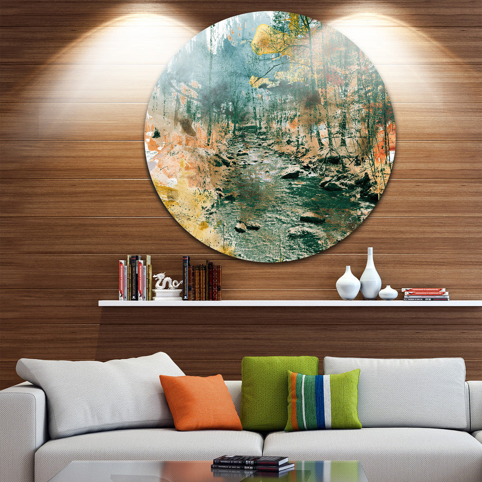 Rocky River, Landscape Painting Round Metal Wall Art, 36"