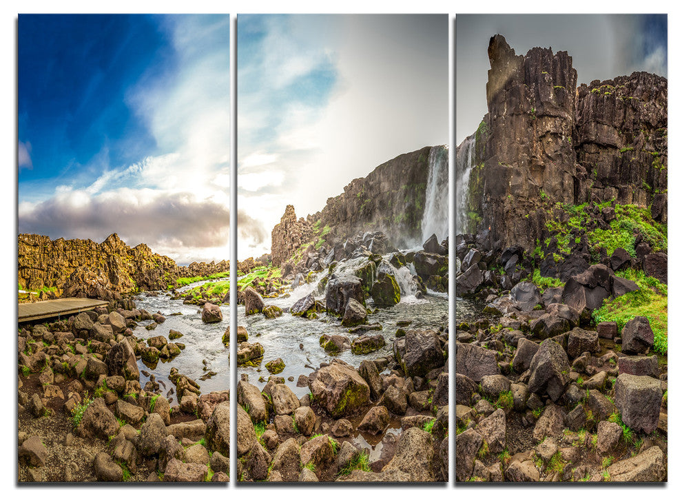"Rocky Waterfall in Mountains Iceland" Wall Art, 3 Panels, 36"x28"