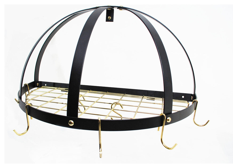Rogar KD Half Dome Pot Rack With Grid, Black and Brass