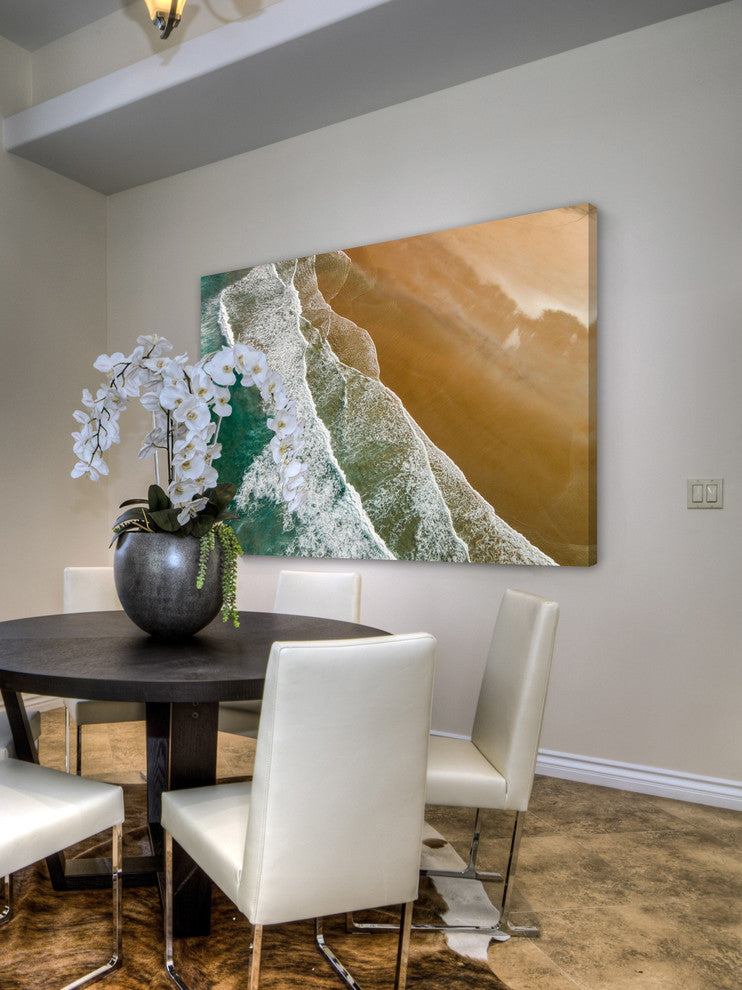 "Rolling Tide" Print by Karolis Janulis features vivid tones and supple artistry. Printed on canvas, this 18 inch wide by 12 inch tall piece will be an exceptional addition to any room. Fine art canvas print from the Marmont Hill Art Collective Artwork by Karolis Janulis Professionally hand stretched Gallery wrapped in sustainable, non-warping wood Arrives ready to hang Made in the USA Includes a certificate of authenticity