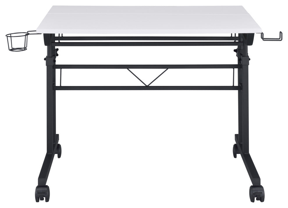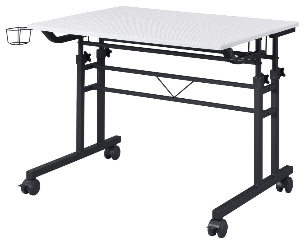 Rolling Writing Desk With Height Adjustable Desktop, White