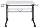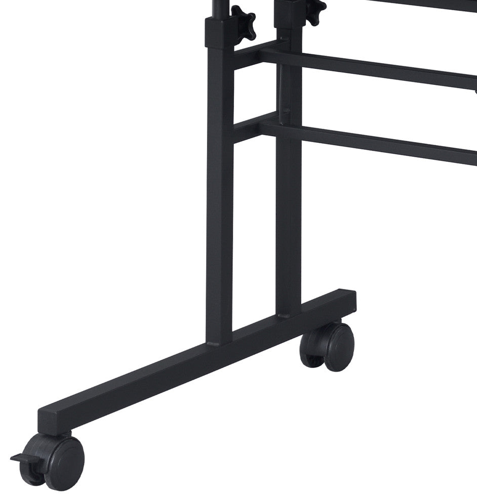 Mix industrial and modern styles together with this Techni Mobili Rolling and Adjustable Writing Desk. This desk is perfect for home-office spaces with its small footprint and offers option of 2 separate desktops independent levels with ample space that includes adjustable height mechanism. The finish coordinates with almost any decor while carbon fiber-like texture tabletop surface and powder-coated metal frame and legs that give this desk a sturdy build along with a fun design. It includes front wheels with locking mechanism that let you swiftly glide in a home office space. The desktop is large enough to hold your laptop, notebooks, and office essentials while the other tabletop surface can be used as riser to keep items within reach. It comes with integrated headphone and cup holders that can be easily installed on right and left. It is easy to assemble, and comes with 5-year limited warranty.