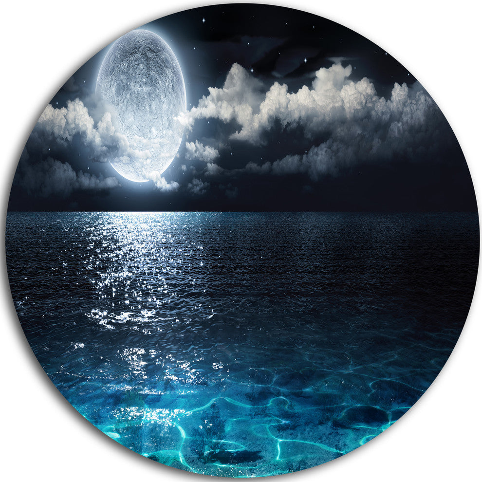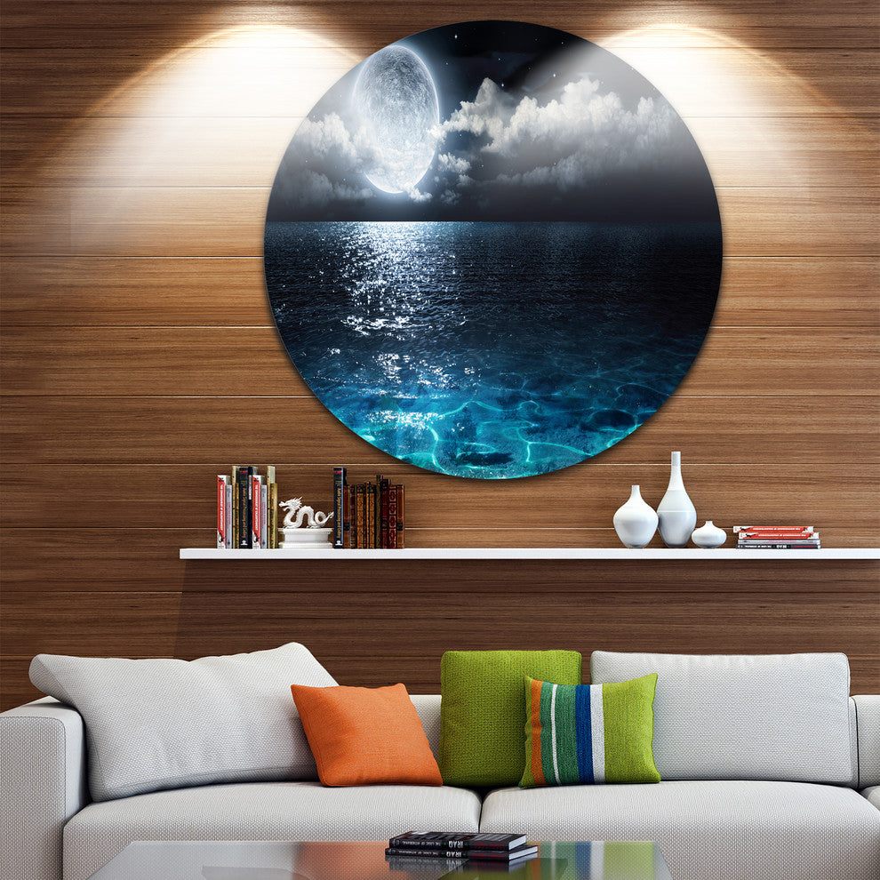 Bring Contemporary Abstraction to your home with this large Circle Metal wall art. This Romantic Full Moon Over Sea Metal Artwork makes it the focal point of any room or office.