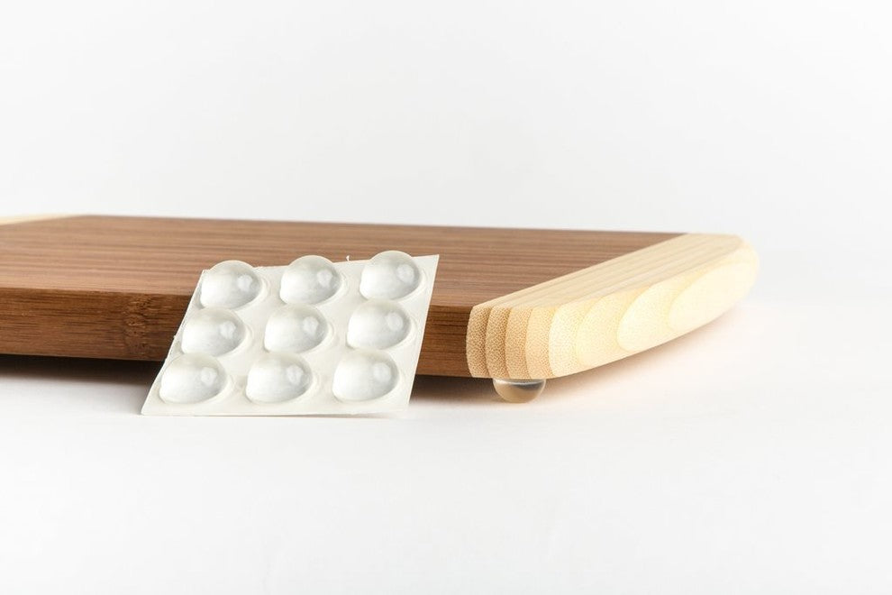 BS-07 round self-adhesive polyurethane rubber bumper feet are sized .335" inches (8.5 mm) x .085" inches (2.2 mm). This sheet contains 450 protective rubber bumper pads. These bumpers can be used on various types of applications to protect them from any type damage and sliding across a particular surface. They also can be used as noise dampeners and door cushions. Apply these bumpers to cabinets, drawers, furniture, cutting boards, picture frames, coasters, and many others. Simply peel and stick to the designated application. We manufacture over 40 different shapes of rubber feet, available in clear, black, white, brown, and gray. Our products are an alternative to 3M bumpons (3M Bumpon is a trademark of the 3M Company and is not affiliated with Bumper Specialties, Inc.) Bumper Specialties is proud to say that our products are made in West Deptford, New Jersey USA. The application possibilities are endless. Look around, our self-adhesive rubber bumper feet are everywhere!