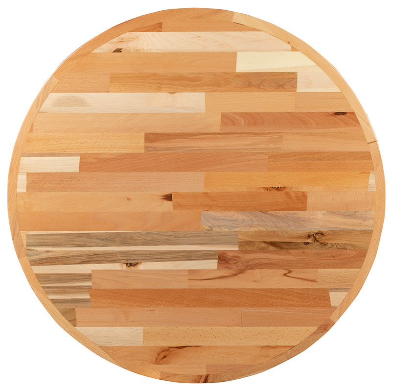 • Add distinct aesthetic to your restaurant, bar, hospitality dining space, or home with the unmatched look of a butcher block top. Environmental-friendly, the durably crafted solid wood table top showcases the beauty of multiple wood types. The heavy-duty thick top will last you for as long as your restaurant is open for business. Use a damp cloth with an alcohol disinfectant containing 70% or higher alcohol concentration followed by a dry cloth to keep your top spotless and germ free. Bring warmth to your dining room with a kitchen butcher block top. Multi-variations in the color add dimension to this smooth tabletop. Complete your round wood dining table with a 22" x 22" table x-base or 18" round table base. Designed to deliver long-lasting performance for a first-rate dining experience. • Restaurant Dining Table Top with Seating for 3• Round Natural Top with 2" Thick Solid Wood Border• Top is smooth to the touch with pattern variances that add depth• UV treated top resists scratching• Clean withalcohol disinfectant for germ prevention and cloth dry• Rustic butcher block top for your restaurant, bar, or kitchen• Base Recommendation: 22" x 22" Table X-Base or 18" Round Table Base• Single Unit Weight: 30 lbs• Item Width: 30 Inches• Item Depth: 30 Inches• Item Height: 2 Inches• Weight Capacity: 150 lbs