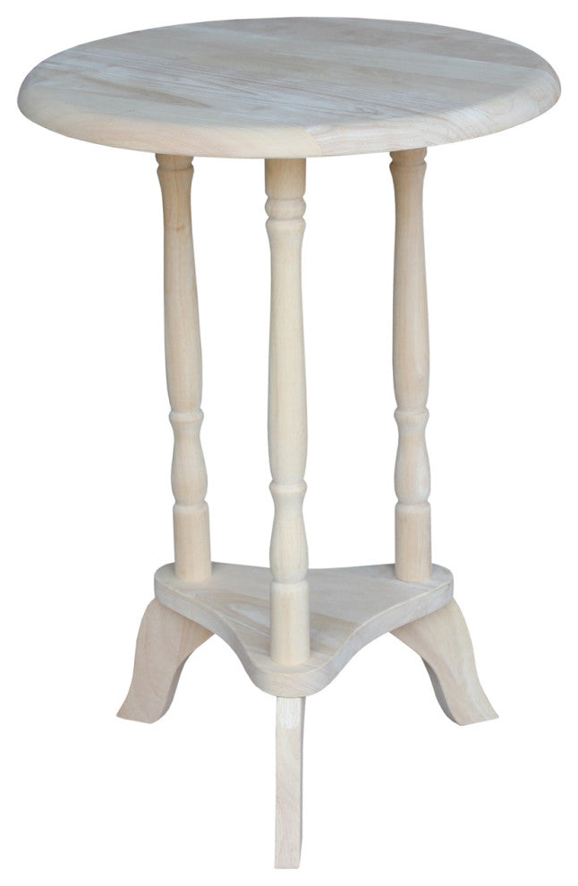 International Concepts home furniture is a beautiful collection of high quality, wood furniture with a traditional and elegant look. Featuring pieces you will be proud of for years to come and will easily complement any decor. All pieces are manufactured from solid Parawood which is more commonly referred to as Rubberwood. Parawood is eco-friendly in terms of being a fantastic renewable resource. As Parawood is considered to be a hardwood, it is actually a truly durable and strong wood.Dimensions: 15.9"W x 15.9"D x 22.4"HMade from solid hardwood with a butcher block surfaceReady to assembleDistance from floor to bottom of lower shelf: 6.69"