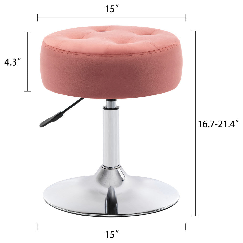 Round Swivel Velvet Vanity Stool, Pink, Standard