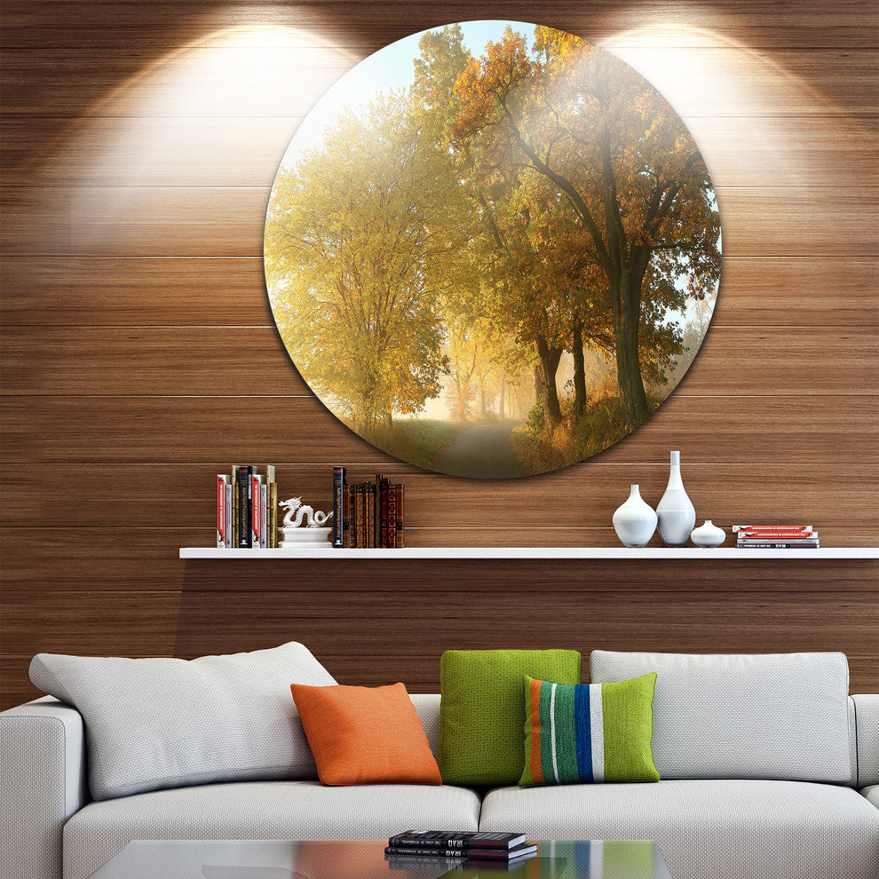 Bring Contemporary Abstraction to your home with this large Circle Metal wall art. This Rural Road Under Green Trees Metal Artwork makes it the focal point of any room or office.
