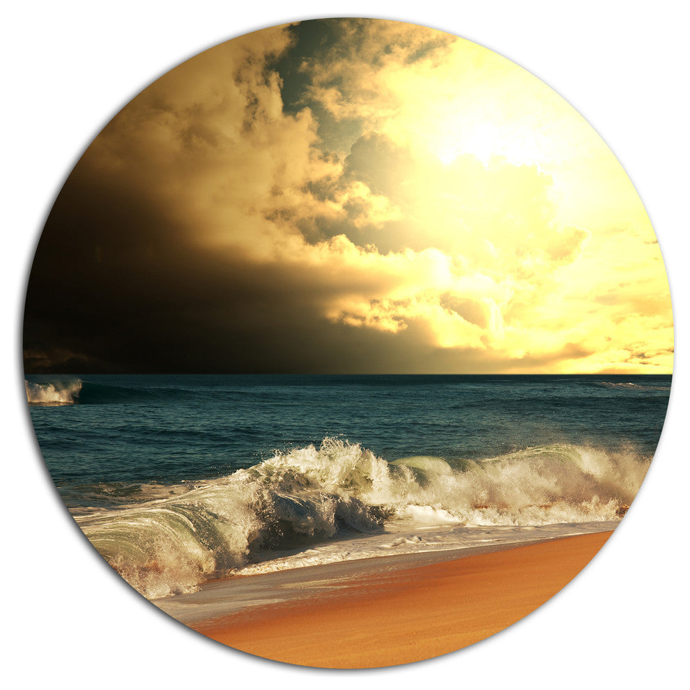 Rushing Waves Under Cloudy Sky, Seashore Large Disc Metal Wall Art, 36"