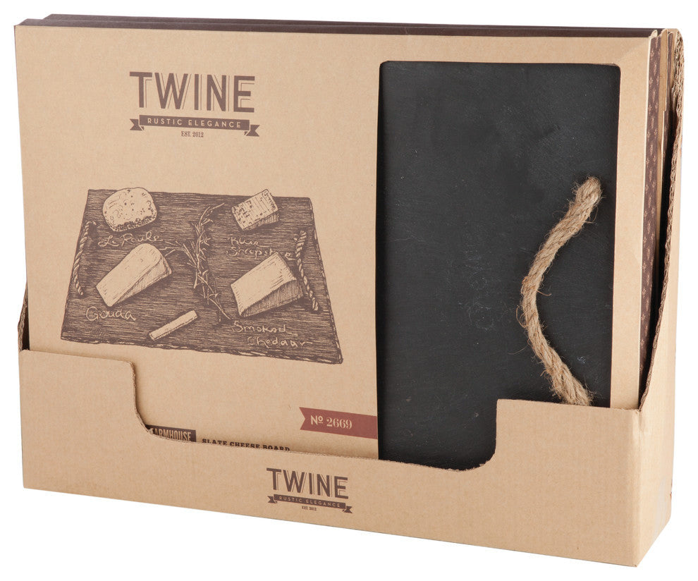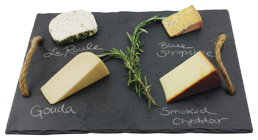 Bring home the wine country feel and throw your own wine and cheese party! Hosting has never been so easy with the Rustic Farmhouse Slate Board; the slate is a beautiful display for hors d''oeuvre, the soapstone chalk is food-safe, and the decorative handles make for easy transportation.Includes 1 piece of food-safe chalkBoard measures 15.5" x 12"Hand wash recommendedTraditional farmhouse designMakes a great gift