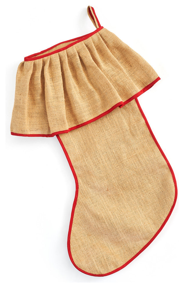 Rustic burlap stocking gets an elegant upgrade. Sweetly outlined in red piping with a soft ruffle, it''s festive without being gaudy. Jute burlap, 9" x 24". By purchasing this design, you are joining our efforts to support artisans worldwide. As handmade pieces, each Arcadia Home design is as unique as the artisan who created it.