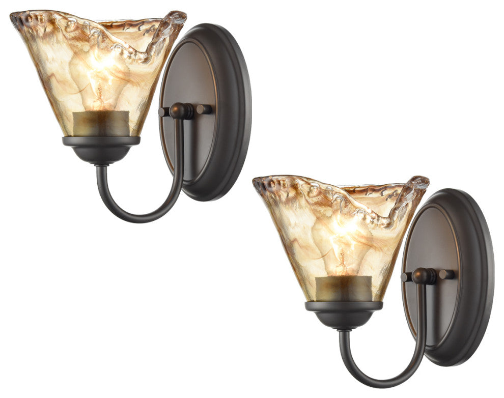 Rustic Wall Sconces Set of 2 With Amber Glow Glass
