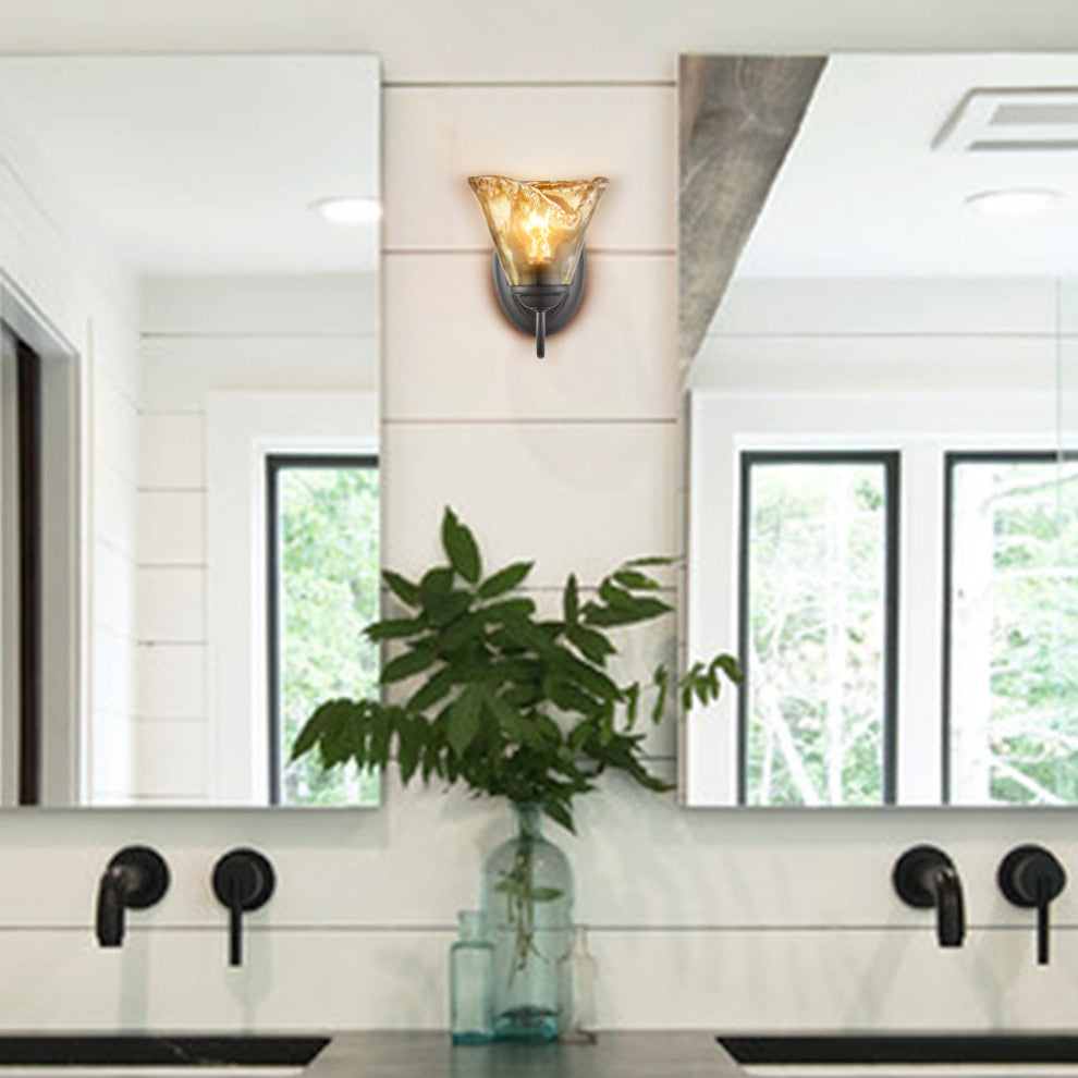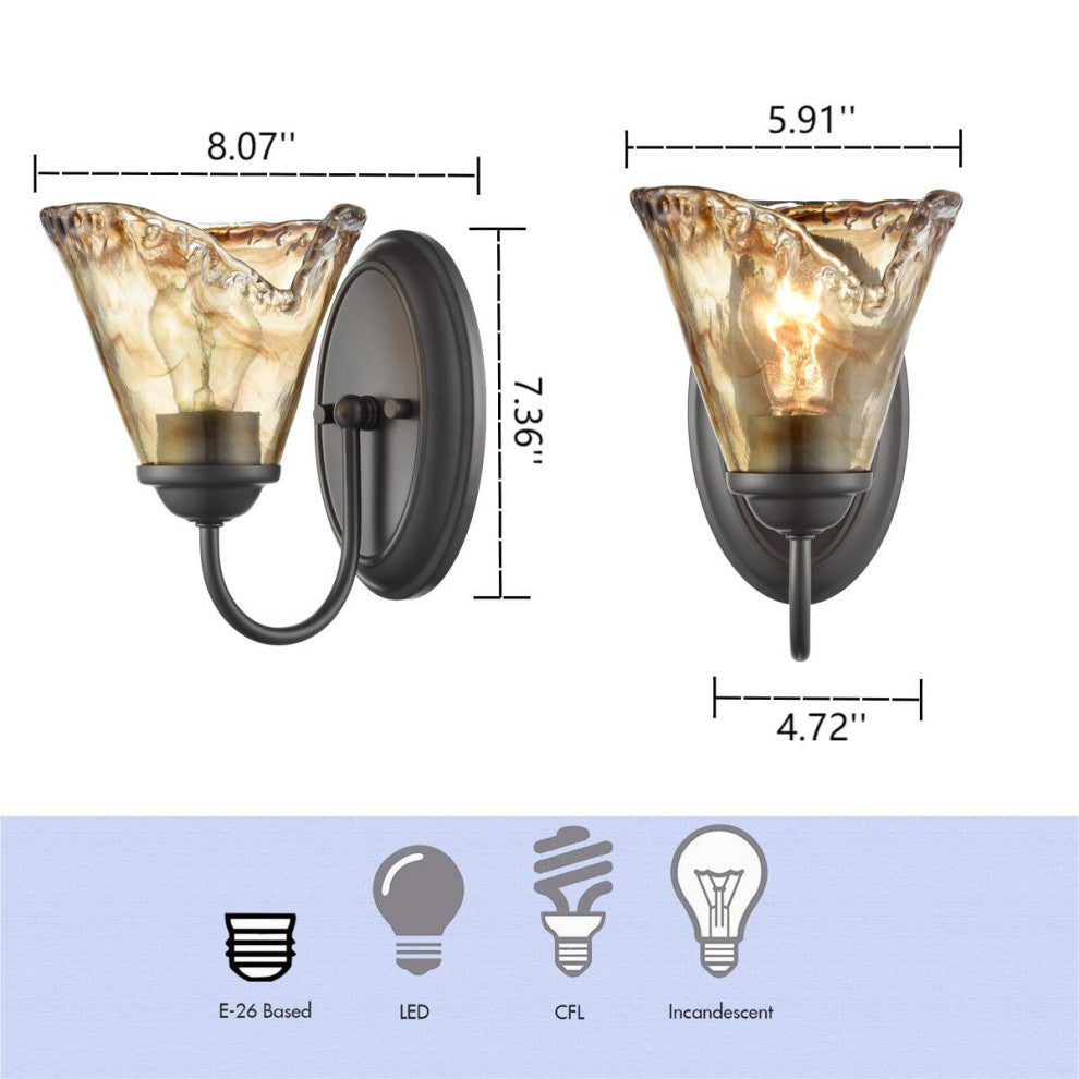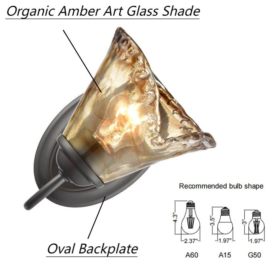 Amber Art Glass Shade: Amber flower shape glass shades make the vanity light full of elegant art feeling;As the glass shade is handmade, so there may be slight variations in color and pattern of each glass shade