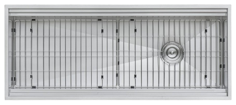 Ruvati takes functionality to a whole new level with the Dual-Tier collection that converts your kitchen sink into a full-fledged workspace. The patented dual-tier ledge features two tiers of tracks on top of one another, allowing for more accessories, enhanced function, and endless possibilities for your kitchen design. This collection also features an offset drain paired with Ruvati"TMs innovative 1-inch slope bottom®. Unique to this collection, along with the classic cutting board and patented foldable drying rack combination, each Dual-Tier sink includes a 3-bowl mixing tray and mixing bowl/colander set with a hardwood platform. With its substantial size and an abundance of built-in accessories, the Dual-Tier collection from Ruvati truly redefines the kitchen space and experience.Patented dual-tier ledge: Overhanging ledges on the front and back provide two levels of tracks for sliding the built-in accessories.LedgeFit®: Sink is compatible with 40+ optional LedgeFit® accessories that are interchangeable between different Ruvati workstation sinks, giving you endless kitchen customization options, now and into the future.Innovative slope-bottom®: Bottom of the sink has a 1-inch slope towards the drain ensuring that all water and debris rushes towards the drain.Easily install two faucets: The large size of the sink allows for two people to work at the same time.16 gauge stainless steel: Premium T-304 Grade (18/10 Chromium/Nickel) will never rust or stain.Commercial-grade brushed finish: Easy to clean and long-lasting "" hides scratches and matches well with your kitchen appliances.Undermount installation: Cutout templates and mounting clips are provided.Includes wood platform with mixing bowl and colander: Can be used on both upper and lower tiers.Includes 3-bowl serving board: Slides on the upper tier "" perfect for serving condiments, cutting fruits and veggies, and preparing salsa.Foldable drying rack (Patented): Constructed of stainless steel bars and a flexible silicone frame "" ideal as a dish-drying rack.Solid hardwood cutting board: Flat on one side and tray with raised edges on the other "" can be used on both upper and lower tiers (17-inch x 16-inch).Stainless steel colander: Hangs nicely over the sink bowl "" making it easy to rinse fruits and vegetables right on the sink.Exterior dimensions: 45" (wide) x 19" (front-to-back)Interior bowl dimensions: 43-3/8" (wide) x 14-5/8" (front-to-back) x 10" (bowl depth)Minimum base cabinet: 48"3.5" drain opening: Will fit any standard garbage disposal. Note: Included drain is only for standard plumbing. Garbage disposal flange is not included. Use the flange that comes with your garbage disposal.Included in box: Sink, reversible cutting board/tray, wood platform with mixing bowl and colander attachments, 3-bowl condiment tray, rectangular stainless steel colander, foldable drying rack, bottom rinse grid, basket strainer drain, decorative drain cover, cut-out template, and mounting brackets.cUPC certified and tested by IAPMO to meet all US and Canadian plumbing standardsRuvati USA Limited Lifetime Warranty