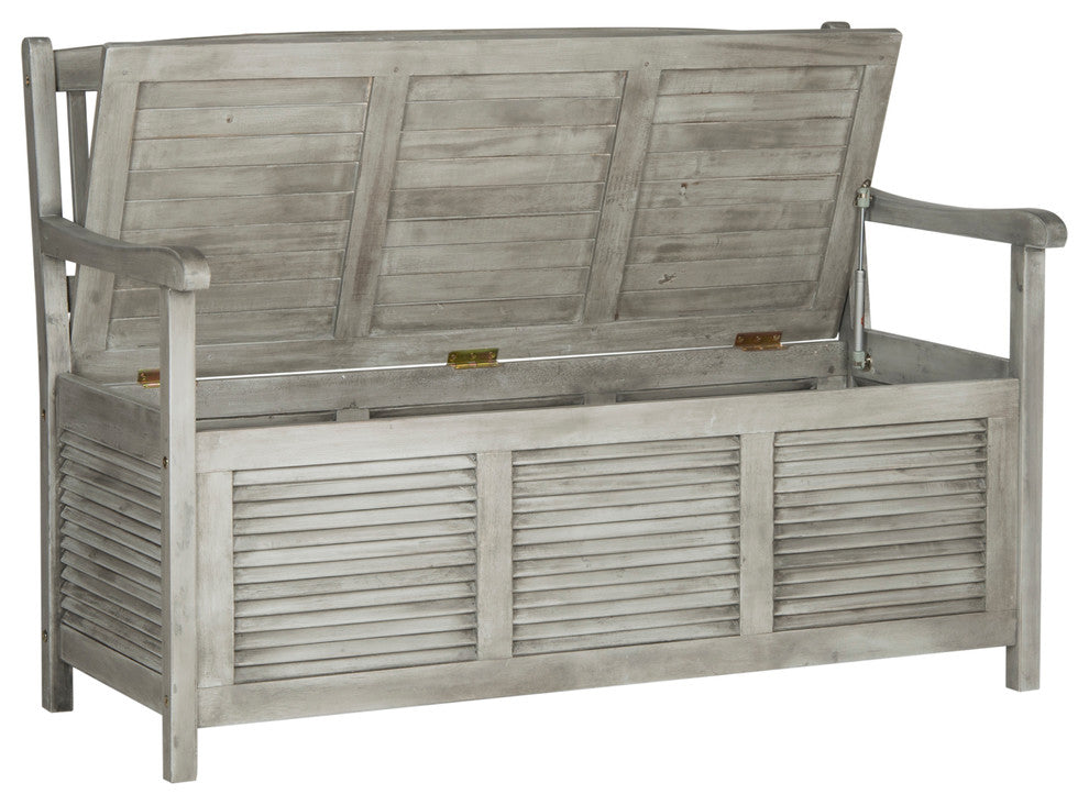 Inventive and beautiful, the Brisbane outdoor storage bench solves the age-old dilemma of where to store pool gear or outdoor cushions, while providing seating for two. Crafted of easy care acacia wood in Gray, this piece promises style and function.Care Instructions: Store outdoor furniture indoors or cover well when not in use. Remove wooden furniture from standing water. Dust regularly with small brush or vacuum. Spills should be taken care of immediately before they harden or stain with a slightly dampened sponge.Item Dimensions: 50" x 24" x 35.2"