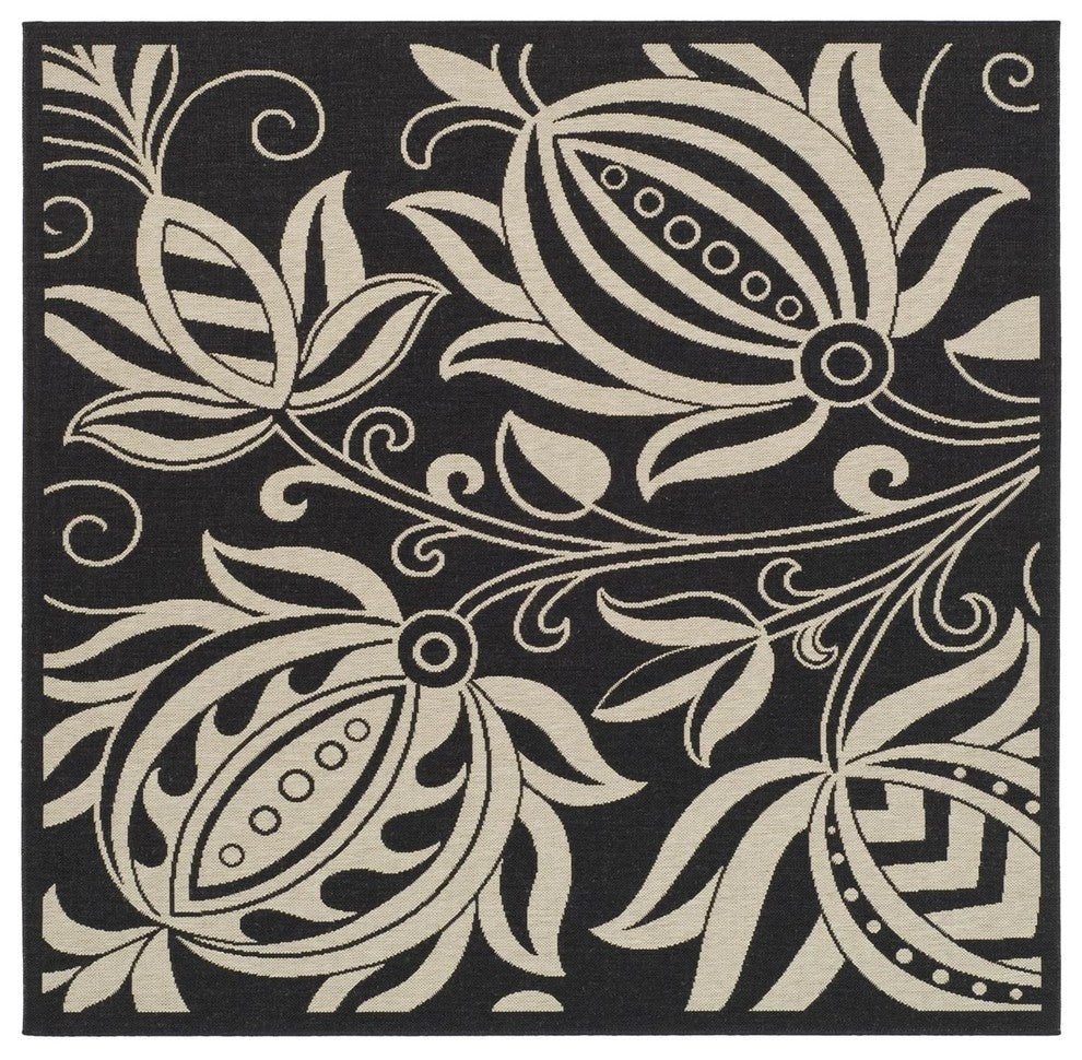 Safavieh Courtyard Cy2961-3908 Black, Sand Area Rug, 7'x7' Square