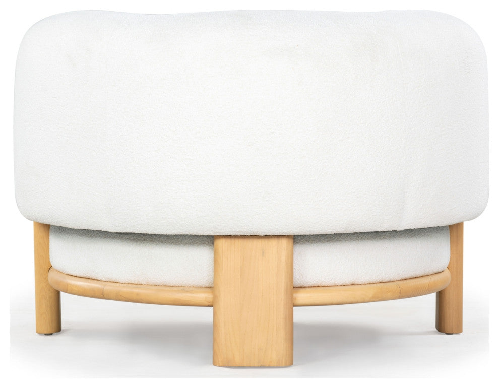 Introducing the Oscar Boucle Accent Chair - where contemporary design meets classic comfort. Designed with a striking ivory/natural palette, this accent chair promises to seamlessly enhance your space, adding just the right touch of elegance. Crafted from solid ashwood, this chair is a testament to impeccable craftsmanship and careful attention to detail. The durable ashwood frame not only elevates its aesthetic appeal but also ensures reliable strength and stability for daily use. Adorned with a sumptuous Boucle fabric, the Oscar Accent chair boasts a delicately textured surface that''s both stunning to the eye and soothing to the touch. Made with 100% polyester, the fabric upholstery is not only aesthetically appealing, but is also highly resistant to daily wear and tear ensuring its fresh look remains intact. This striking Oscar Boucle Accent Chair is the perfect blend of sophistication and functionality, designed for those who appreciate fine living and uncompromising comfort. It''s not just a chair- it''s a statement piece that will definitely impress your guests and enrich your living space. Whether you-re looking to add a chic touch to your living room, study, or bedroom, the Oscar Boucle Accent Chair surely won''t disappoint. Order your chair today and experience the difference.