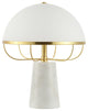 Make a stylish and eye-catching impact with our beautiful Fraser table lamp. Inspired by mid-century modern design, our table lamp adds distinct charm and character to any surface. Its gorgeous dome shade is supported by a curved, architectural base to make a stunning statement. The milky glass shade diffuses a soft glow to create a radiant and welcoming effect. Featuring a white marble base and brass accents, our table lamp adds gleaming glamour and chic style to your nightstand, console, or end table.