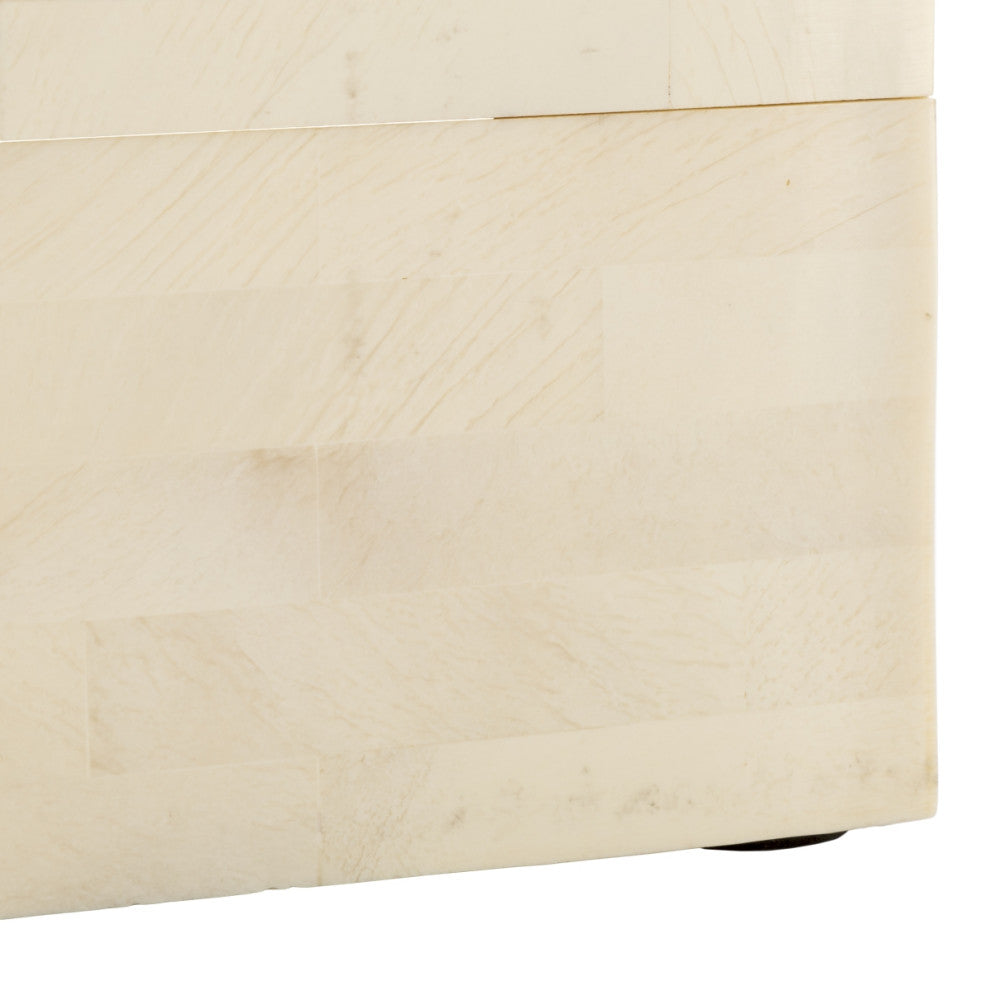 Introducing the Sabi Decor Box Set of 2-a harmonious blend of functionality and elegance for your two-room decor needs. With its antique ivory and faux bone color palette, this set imbues a touch of sophistication into any interior space. Each rectangular box, crafted from resin and MDF, features a convincing faux bone effect that echoes luxury without the extravagance.The stackable and nestable design of the Sabi Decor Box Set ensures space-saving convenience while offering a versatile storage solution for your cherished items. Elevate your home''s aesthetic with this practical yet chic set, perfectly suited to complement various decor styles with its subtle, antique charm.This set includes two boxes of differing sizes, with the larger box serving as a foundation for the smaller one, showcasing their ability to stack neatly. The herringbone pattern of inlaid faux bone adds texture and visual interest, while small, discreet feet at the base provide a thoughtful design element for easy placement on any surface.Choose the Sabi Decor Box Set of 2 for an understated yet impactful addition to your living space, seamlessly bridging the gap between decor and utility.Size 1 Dimension: 9"x6"x3.5"Size 2 Dimension: 6"x4"x2.5"