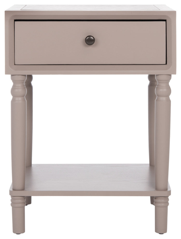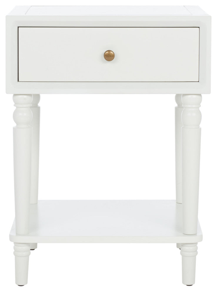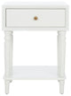 Crafted with 100% poplar wood in an vanilla finish, the Siobhan End Table brings just the right amount of storage and country style to the bedroom, living room, or home office. With its clean lines and refined, sculptured legs, Siobhan highlights the best of transitional design.Frame: Pine wood Finish Surface Treatment: NC CoatingTable Top Thickness: .79"Drawer Dimensions: 14.4" x 13.1" x 4.7"Shelf Dimensions: 17.3" x 15" x 12.6"Leg Height: 28.7"Floor Clearance: 3.9"Weight Capacity: 35 lbsCare Instructions: Wood is a natural material with variations of color shade, configuration, streaks, and grain structure. Each individual piece of Safavieh furniture has characteristic markings that will differ from photo and showroom samples. Regular attention and maintenance of fine furniture can ensure its beauty for years to come. Always use felt pads under all articles to prevent discoloration or softening of the lacquer. Plastic and rubber bases on items can discolor wood.