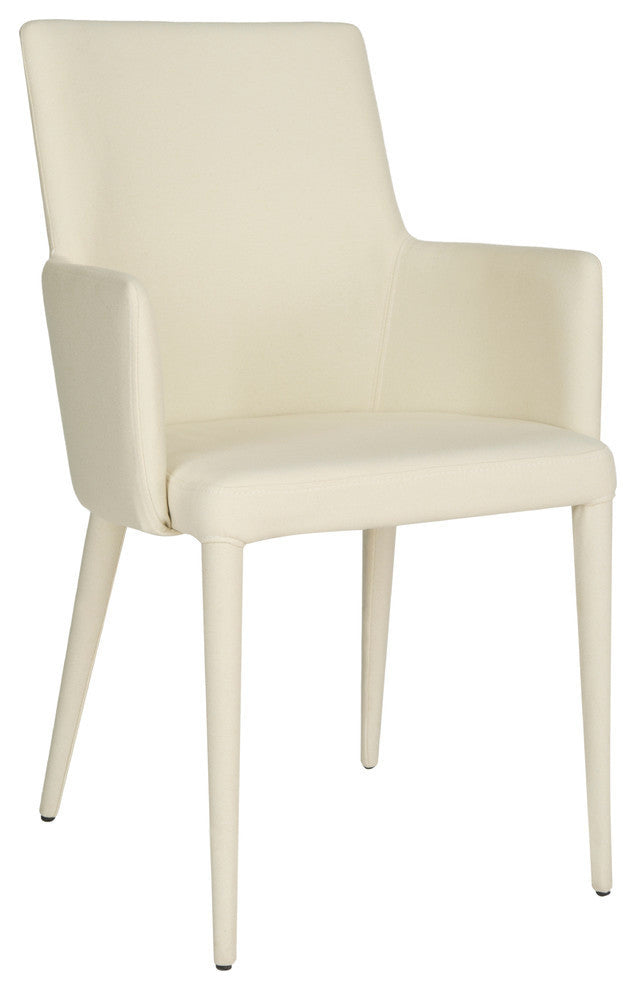 The ultimate contemporary seating experience, this minimalistic arm chair is upholstered in easy-care buttercream PU leather. It is a chic and modern interpretation of the comfortable furnishings that adorned the gentleman''s clubs in London''s St. James.Care Instructions: Dust weekly using a soft, clean cloth slightly dampened with distilled water. Blot spills immediately with a soft, clean absorbent dry cloth.Dimensions: 23.6"W x 21.6"D x 35.5"HWeight: 28.6 lbs.Weight Capacity: 275 lbs.Country: ChinaSeat Dimensions: 21.7"W x 17.3"D x 19.1"H