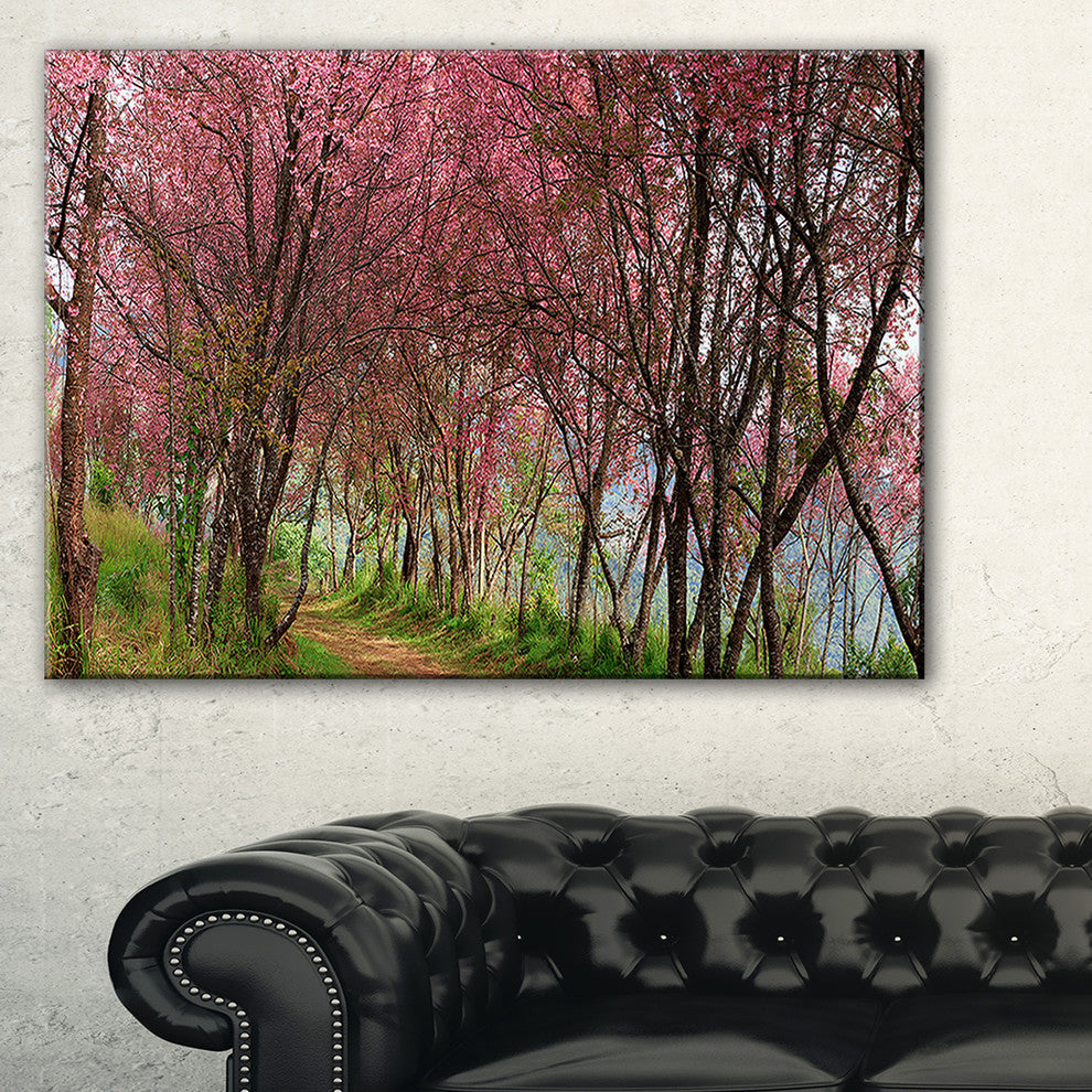 "Sakura Pink Flowers in Thailand" Landscape Art Print Canvas, 40"x20"