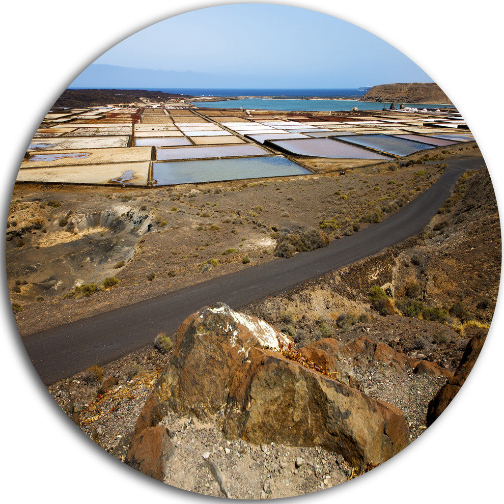 Bring Contemporary Abstraction to your home with this large Circle Metal wall art. This Salt in Lanzarote Spain Musk Pond Metal Artwork makes it the focal point of any room or office.
