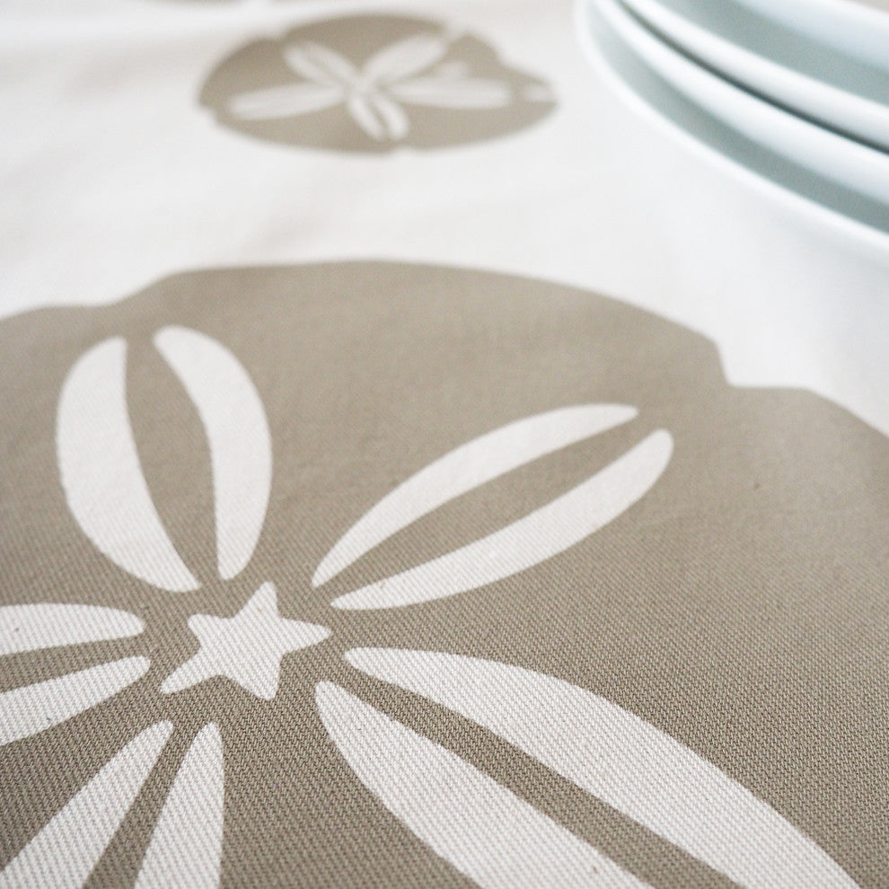 Our stunning Sand Dollar table runner in sandy beige and cream adds beach house style to any tabletop. Perfect for a beach themed wedding, party, dining alfresco or just everyday use! The coastal table runners can also be used to decorate sidebars or dressers. The versatile runners measure 16 x 90 inches.