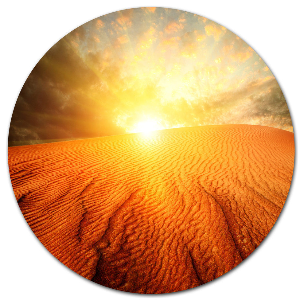 Sand Landscape With Sun, Landscape Art Disc Metal Wall Art, 11"