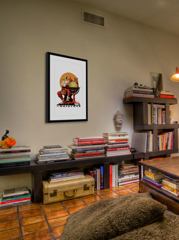 "Santa at the Globe Saturday" Framed Print by Norman Rockwell features vivid tones and supple artistry. Mounted in a gorgeous frame, this 12 inch wide by 18 inch tall piece will be an exceptional addition to any room. Top quality Giclee print on high resolution Archive PaperProfessionally framed and mounted on acid free archive mattsHigh quality durable non-warping frameArrives ready to hang