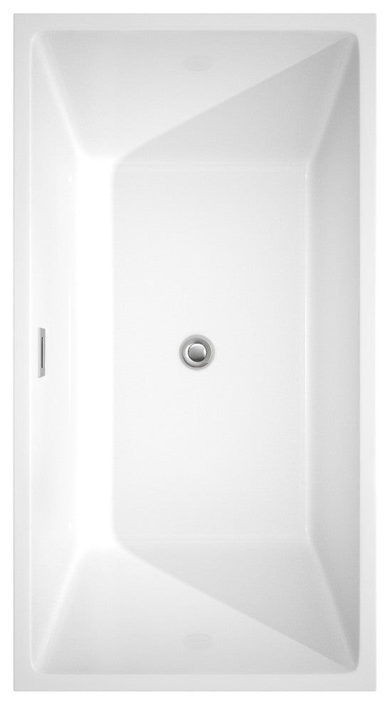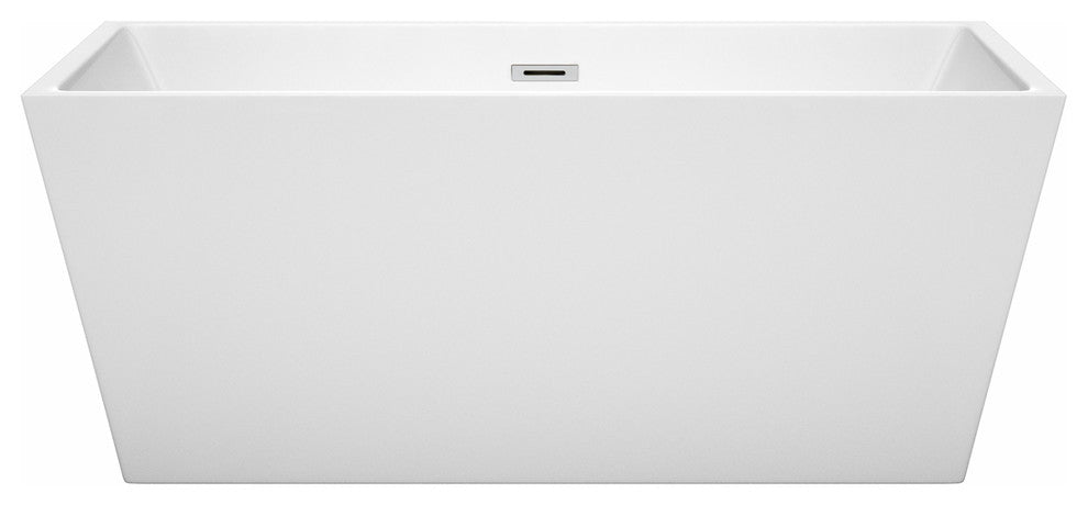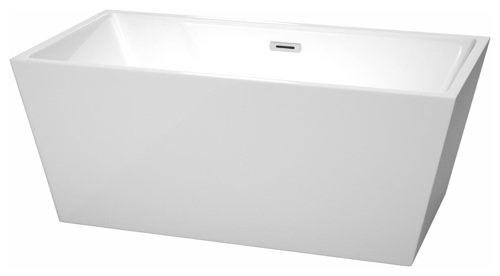 Sara 59" Freestanding White Bathtub, Polished Chrome Drain and Overflow Trim