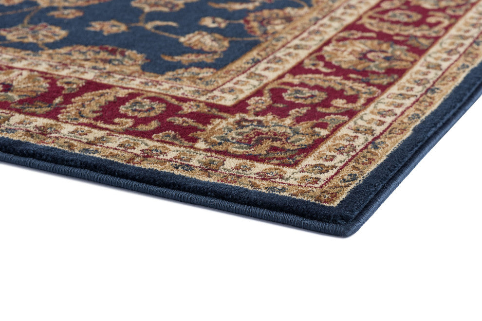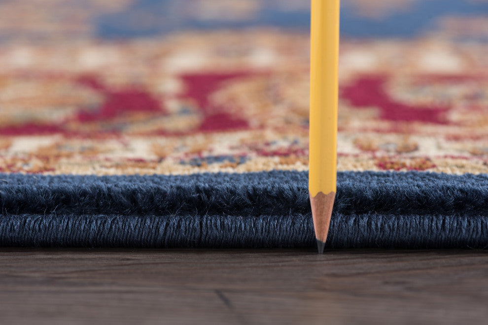 The ornate design of this area rug creates a warm ambience to any room. Classic colors of navy blue
