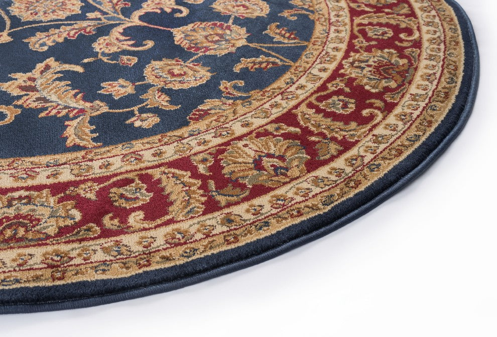 Sariya Transitional Oriental Navy Round Area Rug, 8' Round