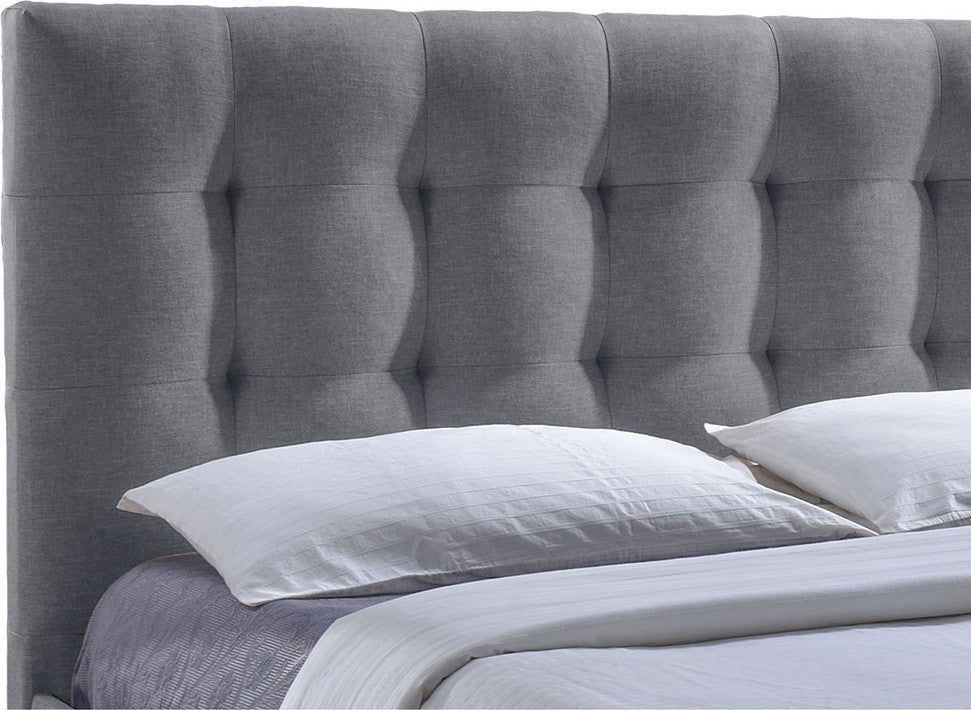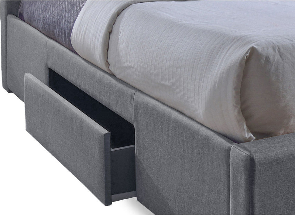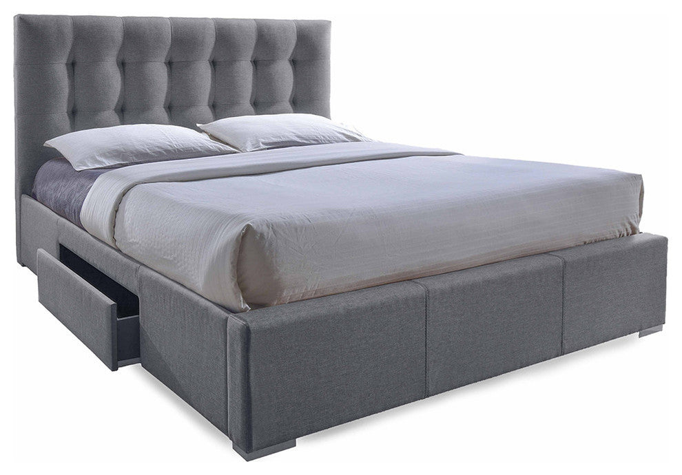 Sarter Grid-Tufted Gray Fabric Upholstered Storage Queen Bed With 2-Drawer