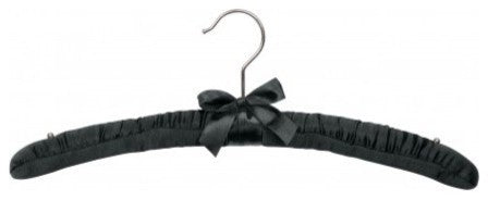 These plush, well-constructed satin padded hangers feature a space-saving flat body, polished chrome swivel hook and an elegant bow. This style also features polished chrome knobs in the shoulders for the option of hanging straps. Soft enough for delicates yet sturdy enough to hold heavier garments, these high quality, low cost hangers are built to last you a lifetime.