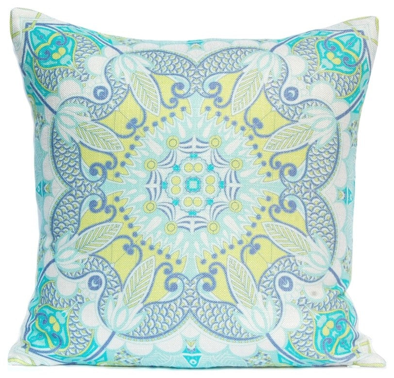 Dimensions: 21"L x 21"W50% Cotton/30% Linen/20% Viscose cover5% Down/95% Feather fillerHidden zipperDry clean onlySolid off-white fabric on the backNote: Basecloth intentionally contains slubs and imperfections.