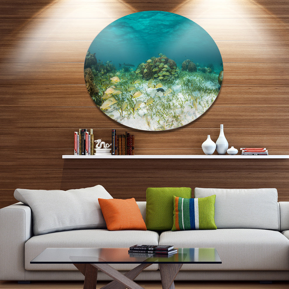 School Of Grunts With Baracuda, Seashore Art Round Wall Art, 11"