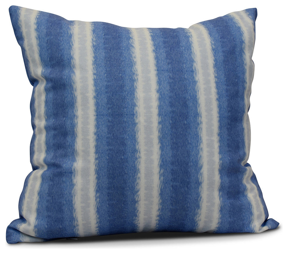 Sea Lines, Stripe Print Outdoor Pillow, Blue, 16"x16"