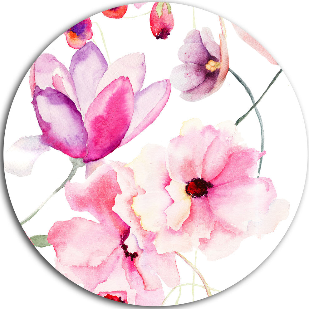 Bring Contemporary Abstraction to your home with this large Circle Metal wall art. This Seamless Pattern of Pink Flowers Metal Artwork makes it the focal point of any room or office.