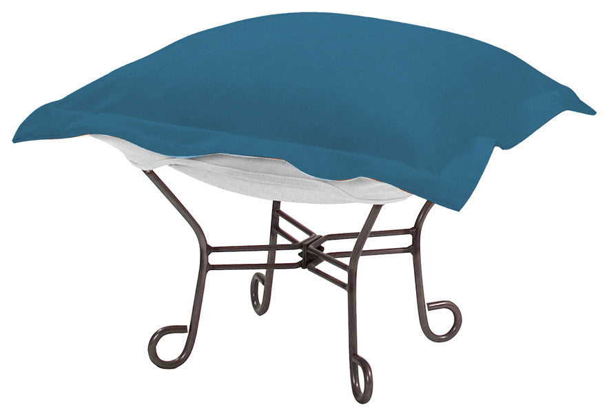 Seascape Scroll Puff Ottoman, Titanium Frame, Turquoise